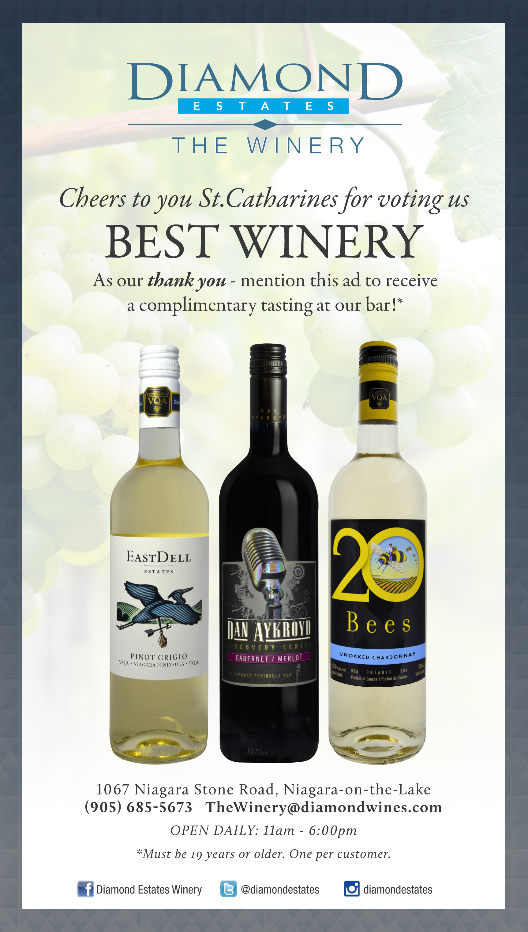 Thank you to the readers of the St. Catharines Standard newspaper for voting Lakeview Wine Co. the BEST WINERY in Niagara for the 2nd year in a row! Mention our ad below and receive a complimentary flight at our tasting bar!