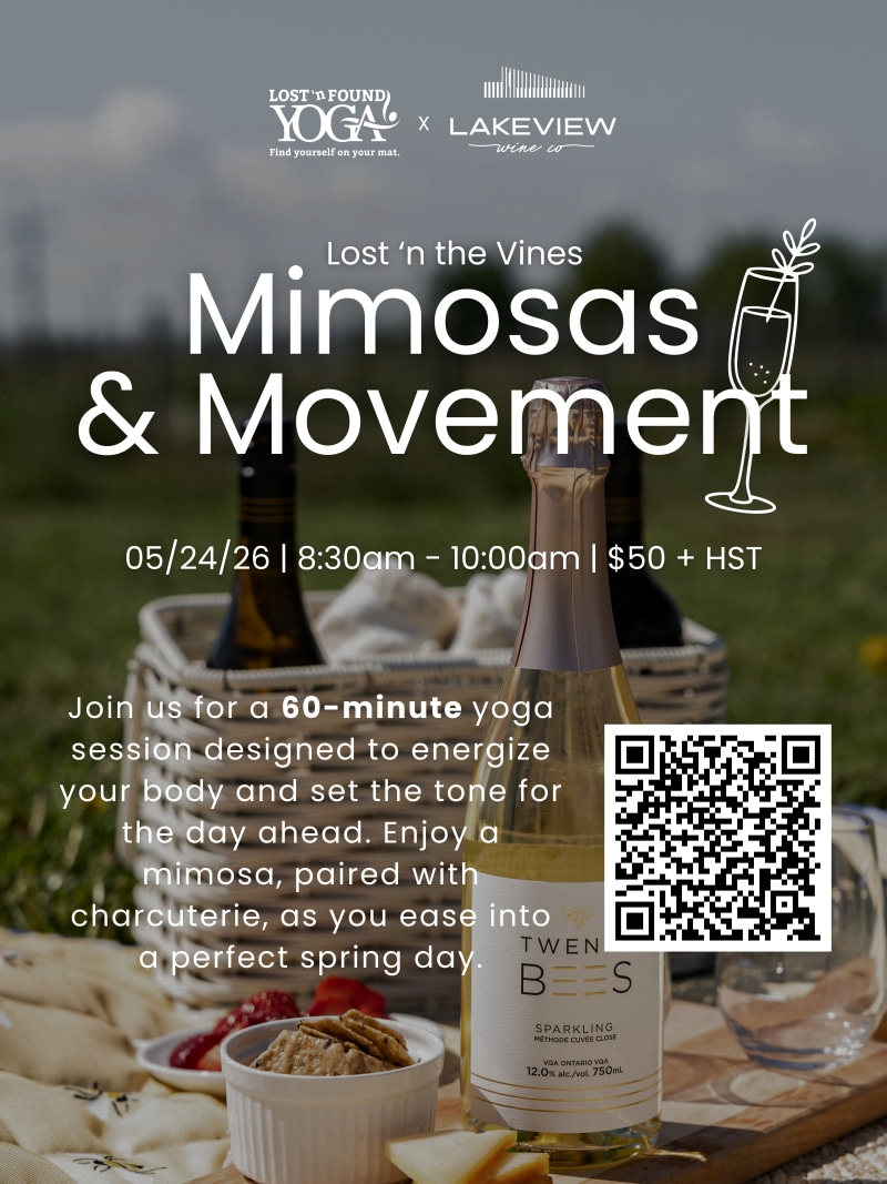 Join us for Lost ‘n the Vines: Mimosas & Movement, hosted by Lost ‘n Found Yoga. This energizing experience begins with a 60-minute yoga session set among the vines, designed to wake up your body and set the tone for the day ahead.
